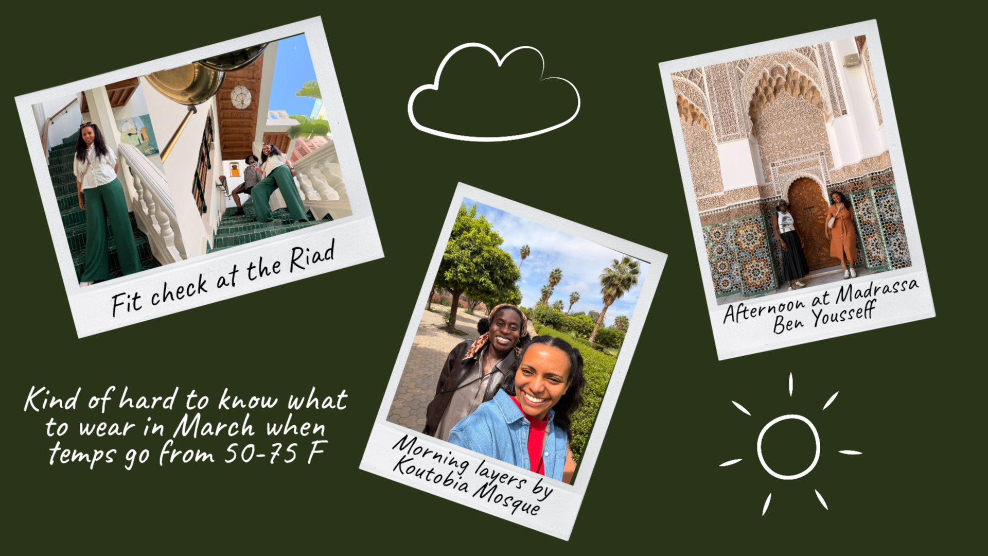Dressing for Marrakech is really about balancing respect, comfort, and practicality—and in shoulder season, being prepared for a little bit of everything weather-wise.